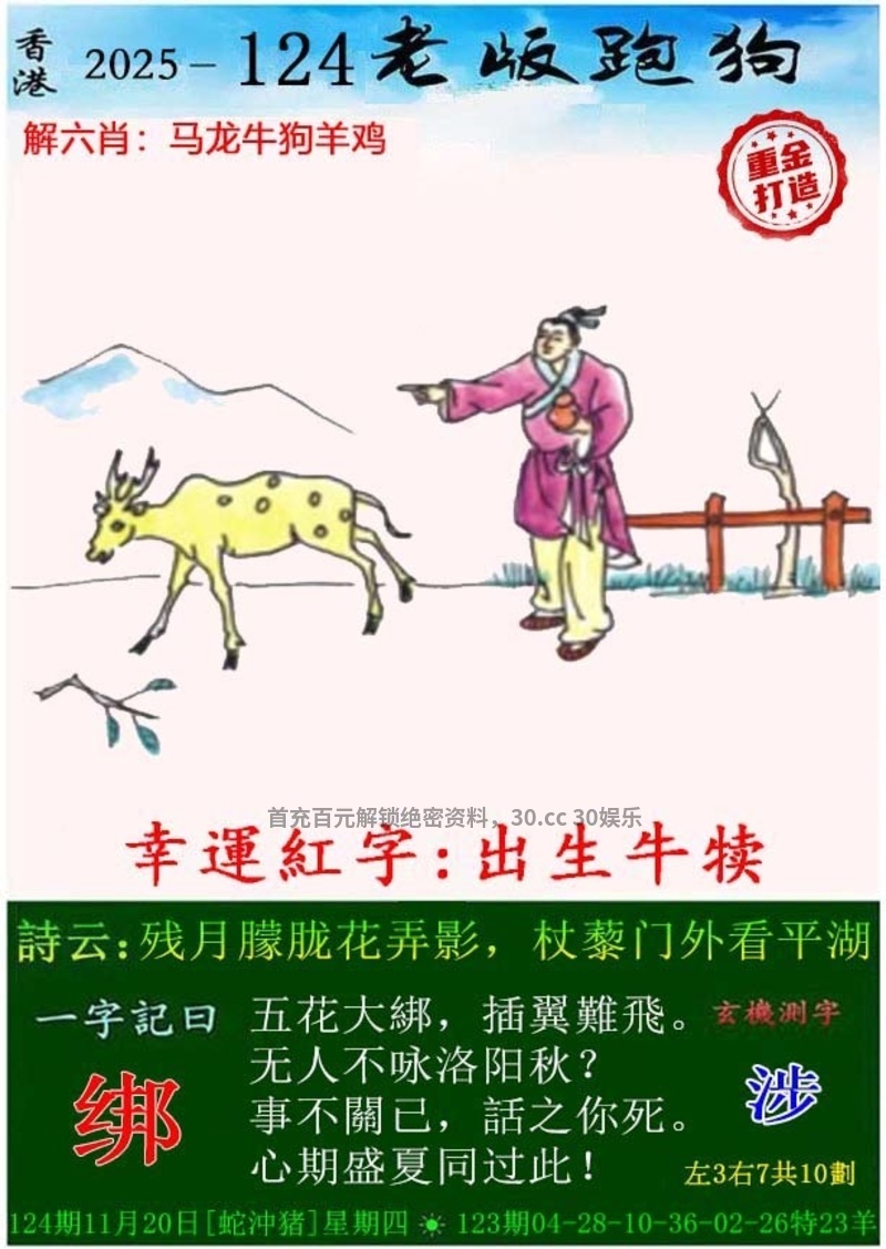 玄机詩雲:山村象踏桄榔叶,玉人紫绶相辉映。一曲相思,前途未卜。幕前生致九青兕。萬水千山,一等再等。富贵的金银散尽。